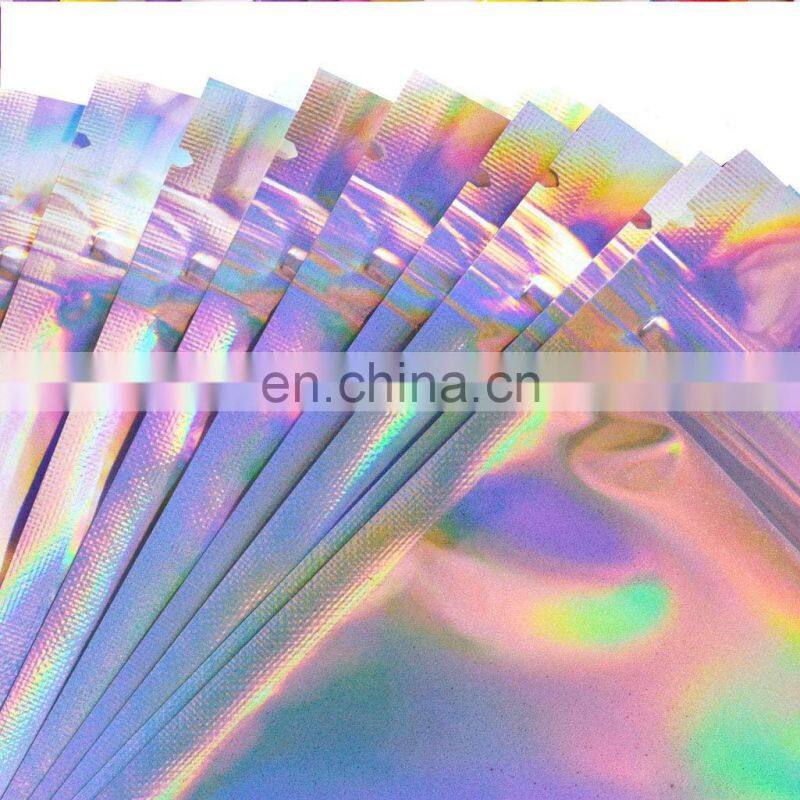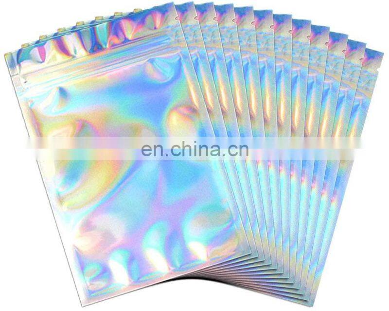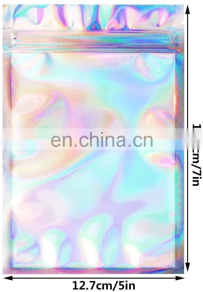 100PCS Holographic Rainbow Color Iridescent Bags Aluminum Foil Packaging Lock Plastic Flat Bag