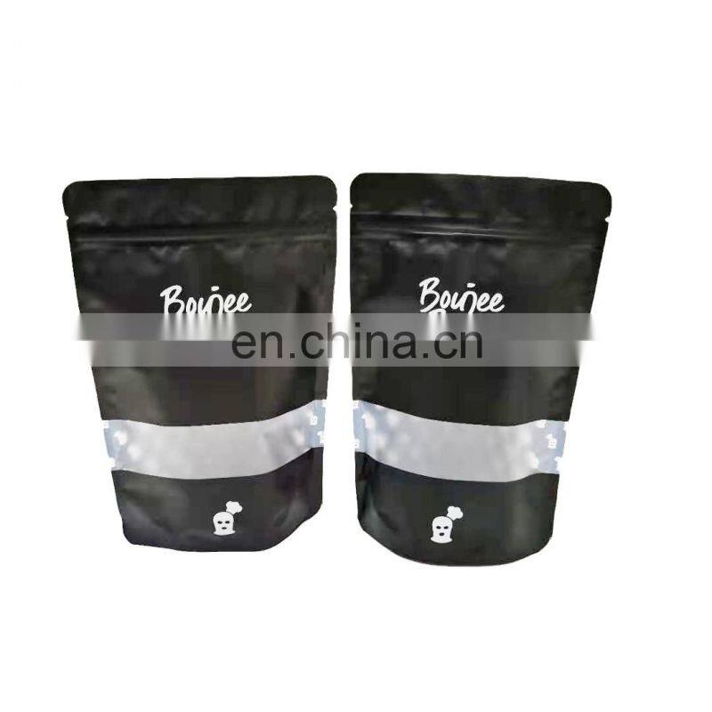 Custom Logo Printing Mylar Smell Proof Stand up Pouch Matte Black 3.5g Mylar Ziplock Bag With Windows