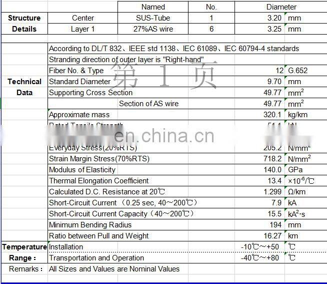Home > Products > OPGW Cable > OPGW 50/12 Core Single Mode Opgw Cable Price With Factory Opgw Cable Price and Fast Delivery in Stock