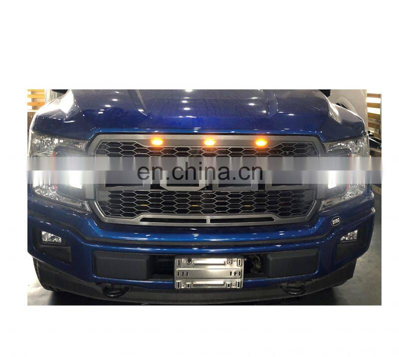 Changzhou Factory Off-Road 4x4 Paint Grilles Raptor Type ABS Gray Front Grill With LED For F150 2015-2017