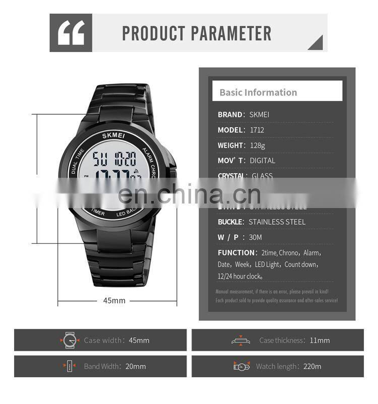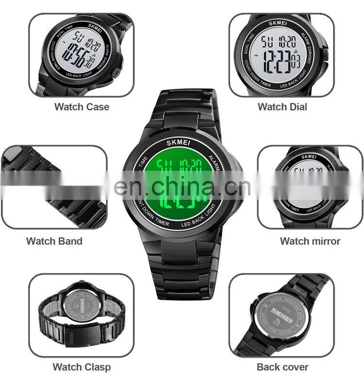 Skmei 1712 Fashion Digital Watches Stainless Steel Waterproof Wristwatches for Men