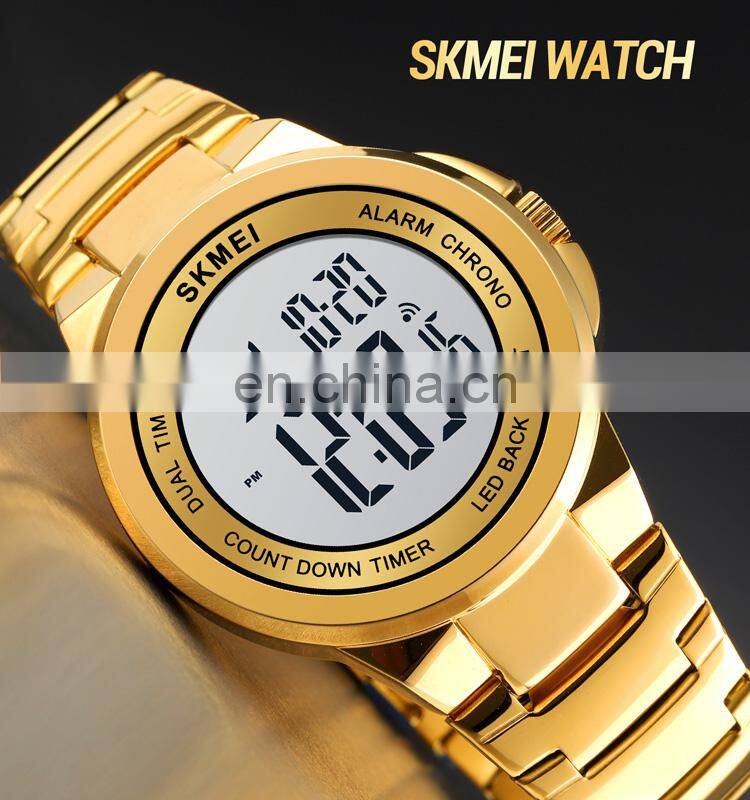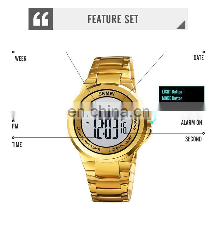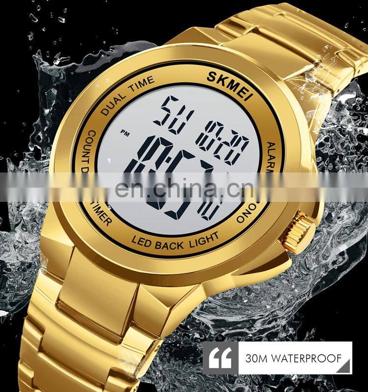 SKMEI 1670 Golden Stainless Steel Watch Men Analog Digital Wrist Watch With Countdown Timer