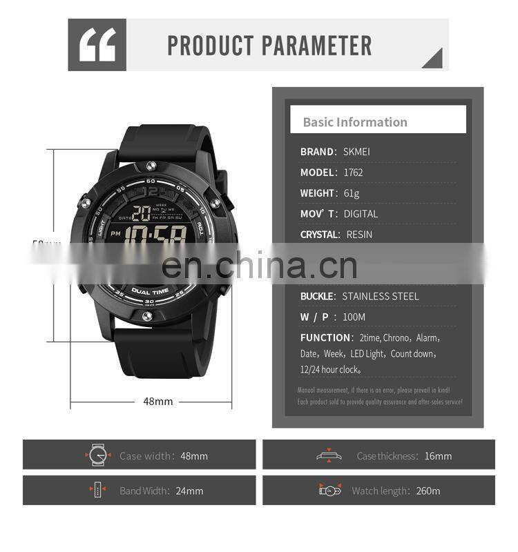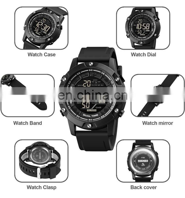 Fashion Skmei 1762 100 Meters Water Resistant Silicone Strap Digital Sports Wrist Watches for Men