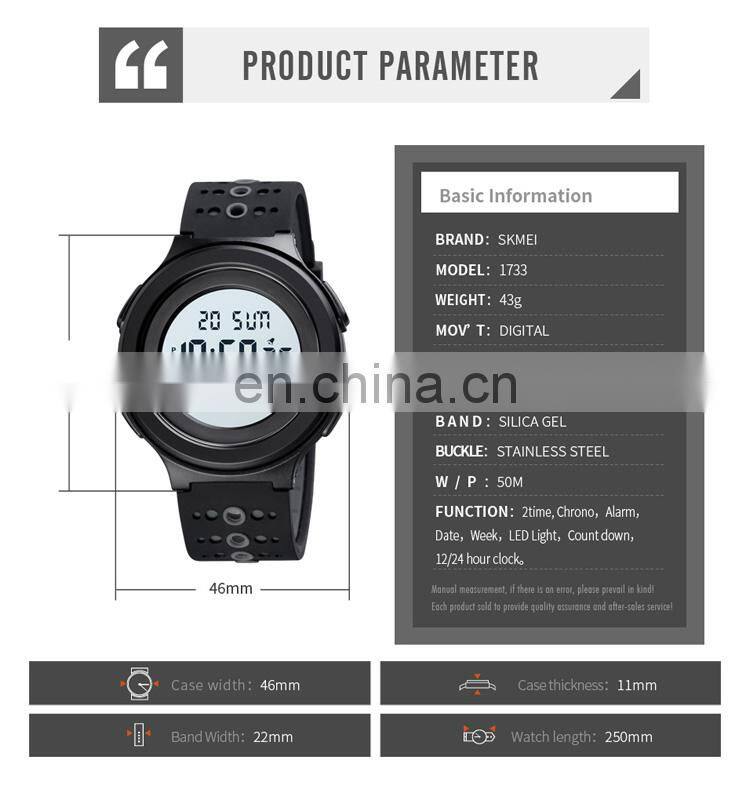 SKMEI 1733 Dual Time Digital Watch Men Waterproof Military Sport Chrono Clock Relogio Masculino