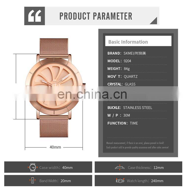 Bulk Wholesale SKMEI 9204 Creative men's watches brand Luxury Quartz Watch For Men Stainless Steel Case Back Watch