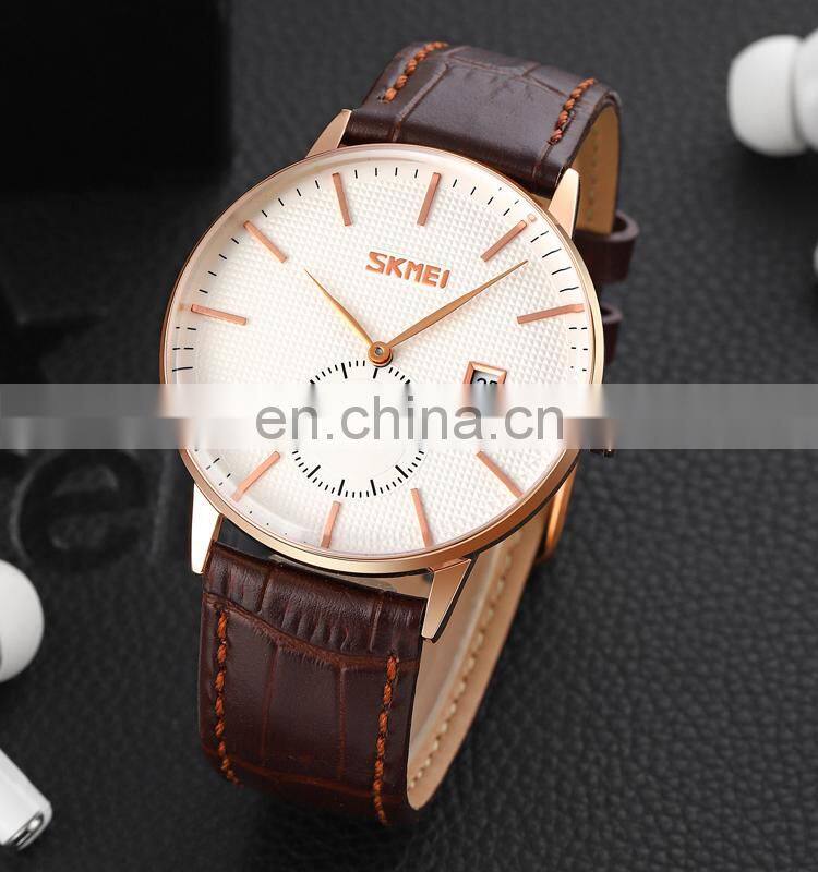 SKMEI 9127 Custom Logo High Quality Mens Luxury Waterproof Leather Quartz Watch