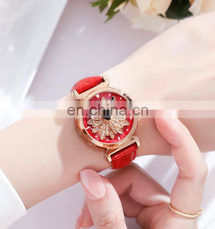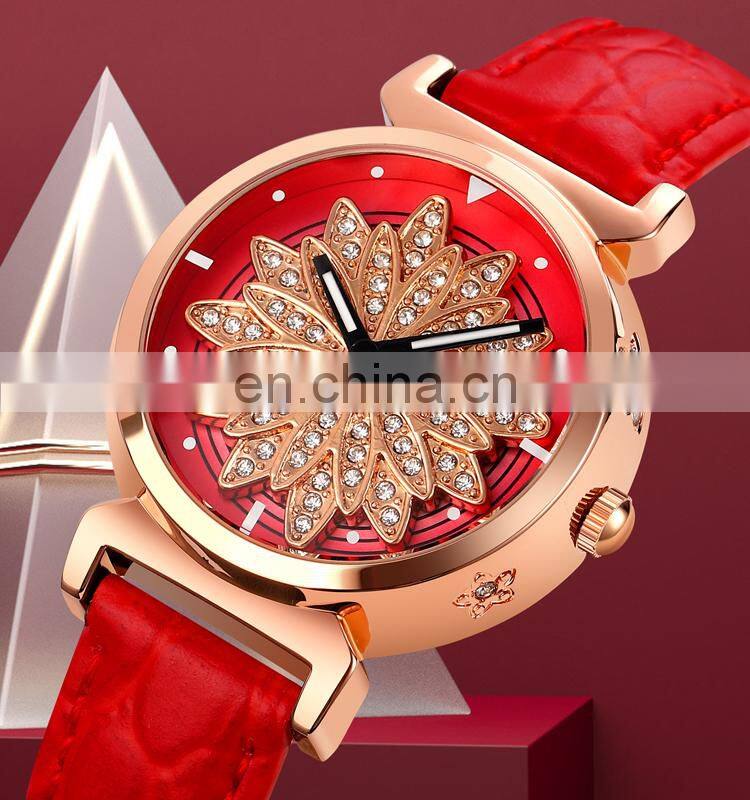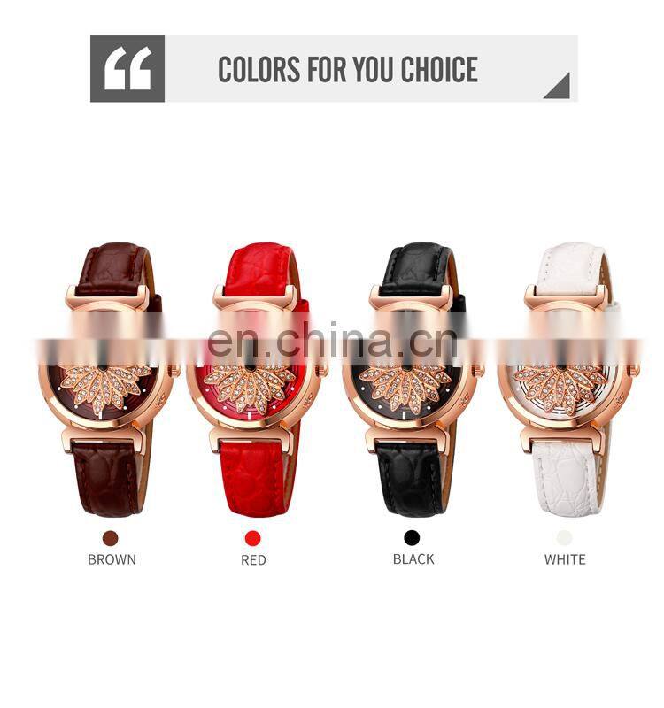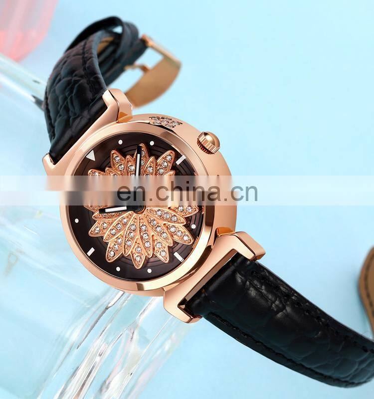 Home > Products > Quartz Watches > Newest Skmei 1766 Flower Dial Ladies Wristwatch Bracelet Leather Quartz Women Dress Watches