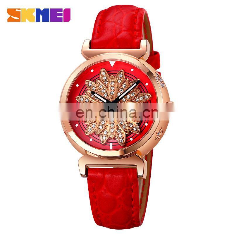 Newest Skmei 1766 Flower Dial Ladies Wristwatch Bracelet Leather Quartz Women Dress Watches