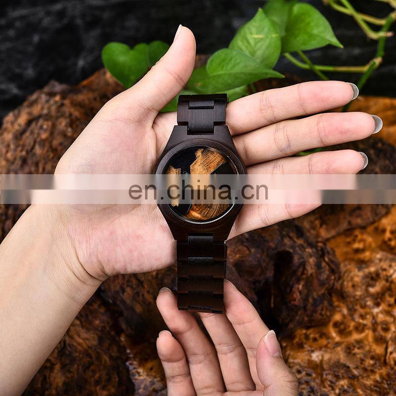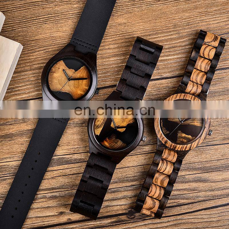Wholesale Handmade Wood Resin Watches for Men Zebra Wooden Quartz Wristwatch in Wooden Gifts Box OEM Customize