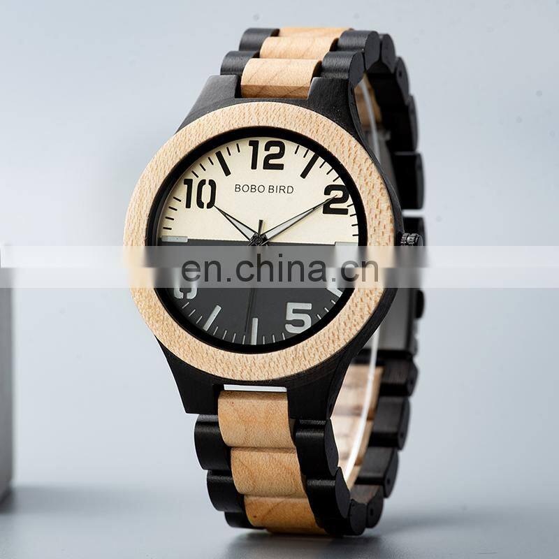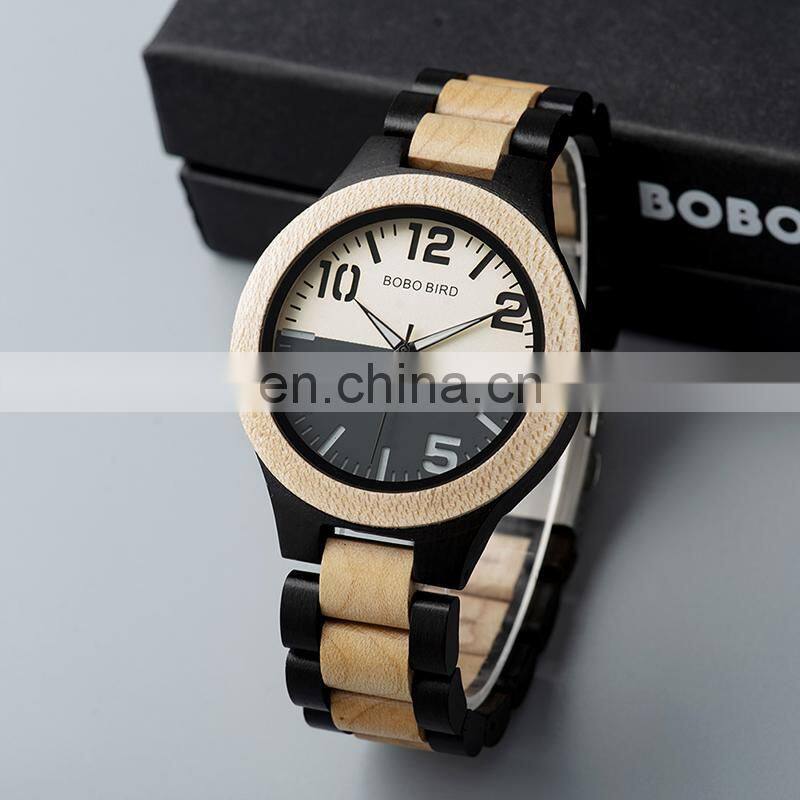 Home > Products > Wooden Bamboo Watches > Wholesale BOBO BIRD Mens Watch Custom Quartz Japan Miyota Movement Natural Wood Watch