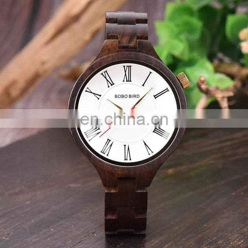 BOBO BIRD Ladies Watch With Wooden Band Waterproof Timepieces Quartz Wristwatch in Bamboo Gift Box Engrave Logo OEM
