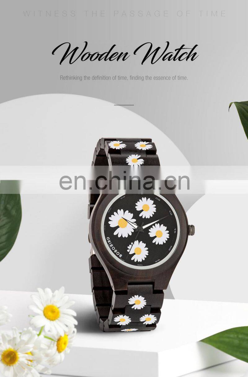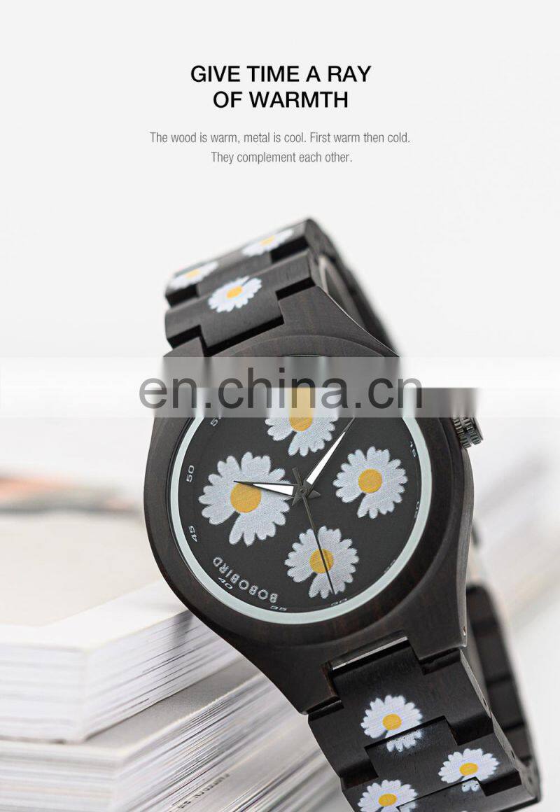 BOBO BIRD Ladies Watch With Wooden Band Waterproof Timepieces Quartz Wristwatch in Bamboo Gift Box Engrave Logo OEM