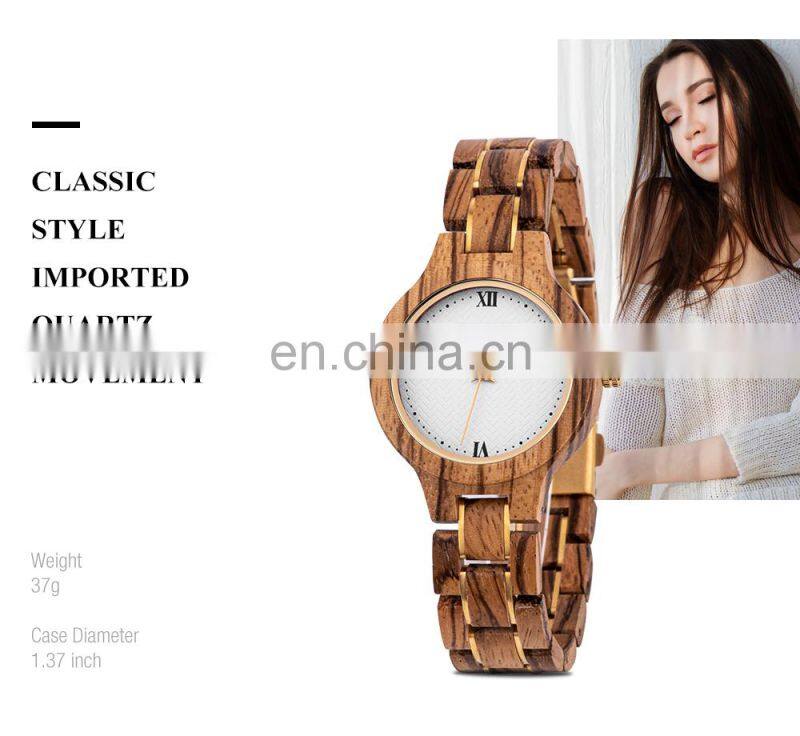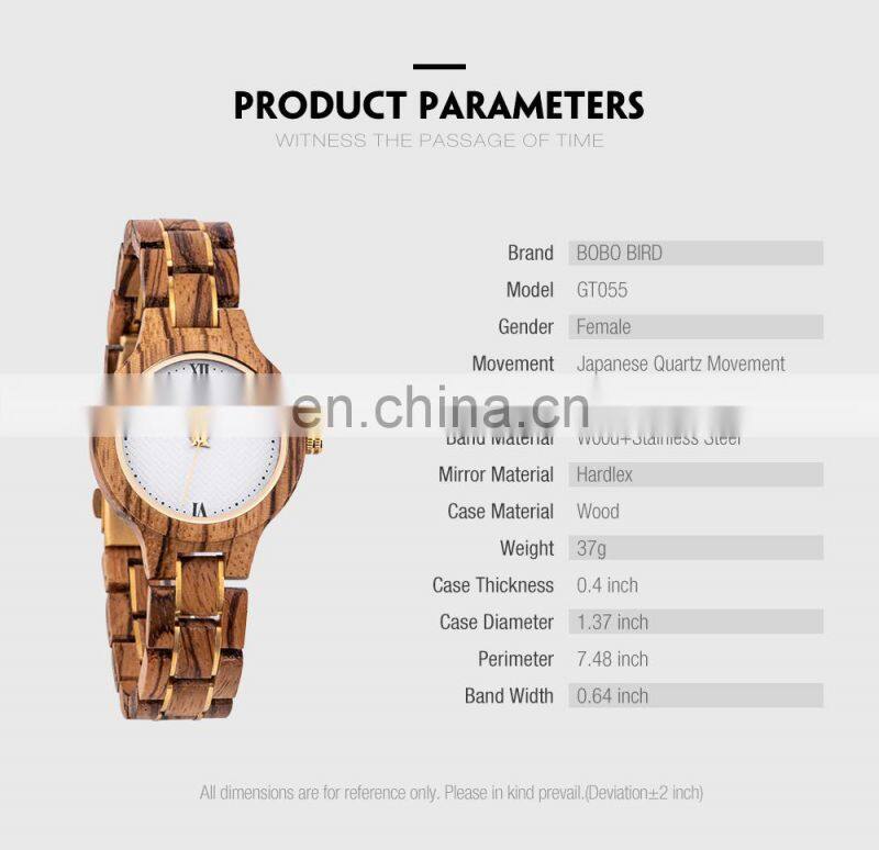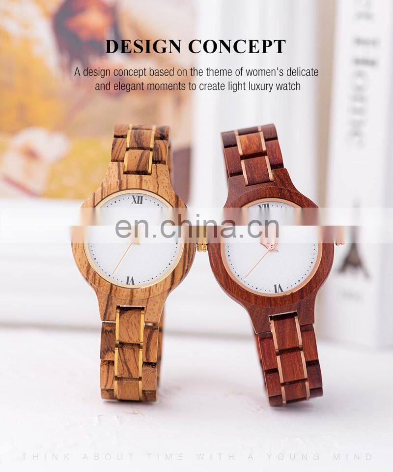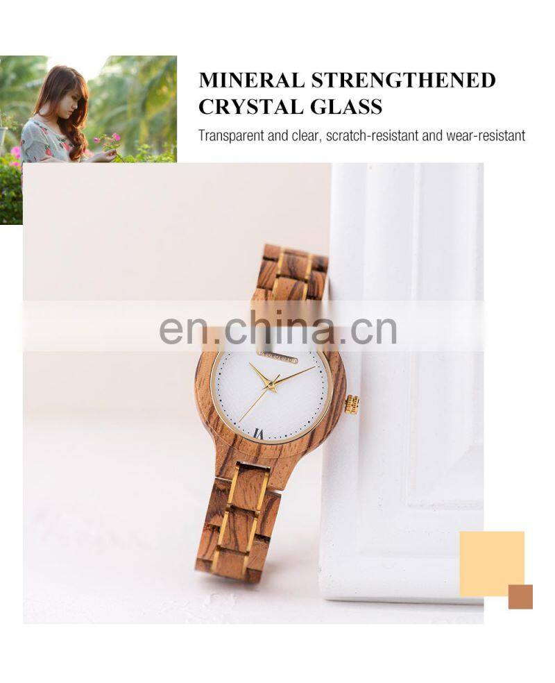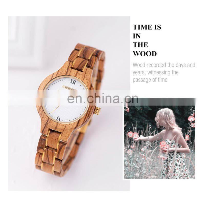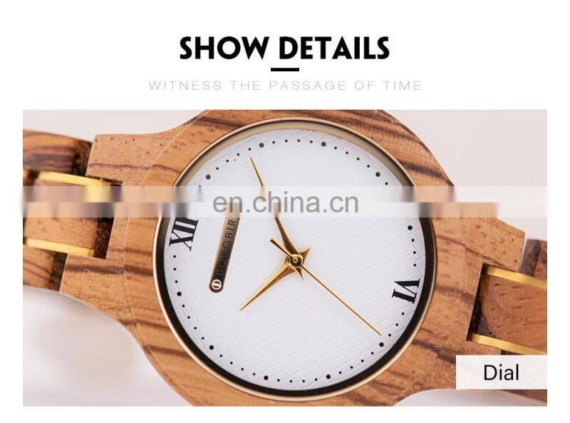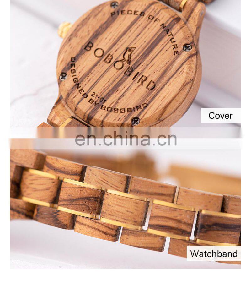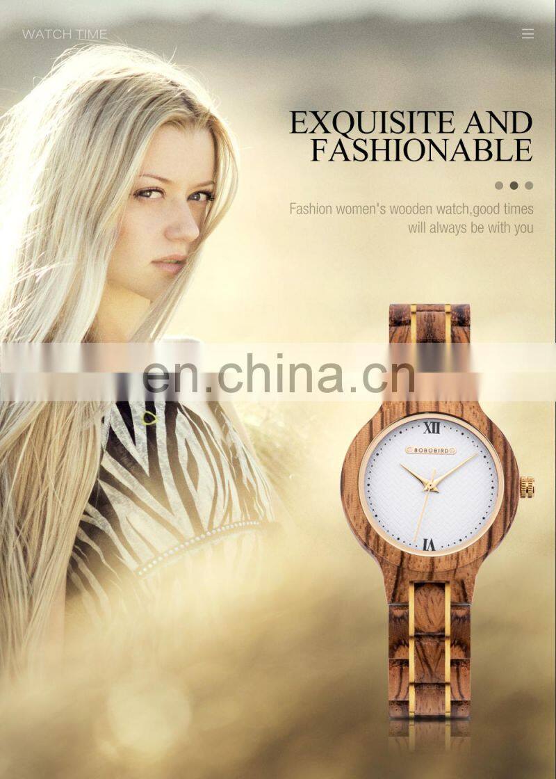 BOBO BIRD Ladies Watch With Wooden Band Waterproof Timepieces Quartz Wristwatch in Bamboo Gift Box Engrave Logo OEM