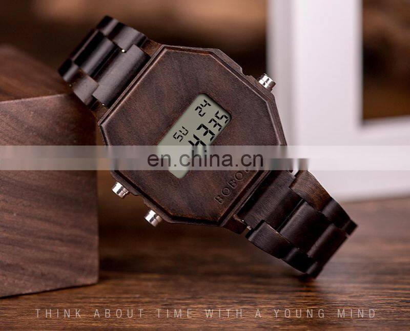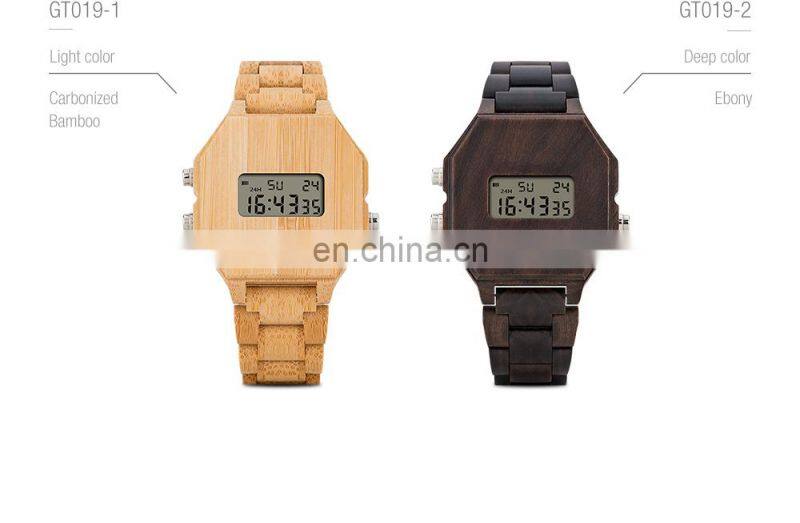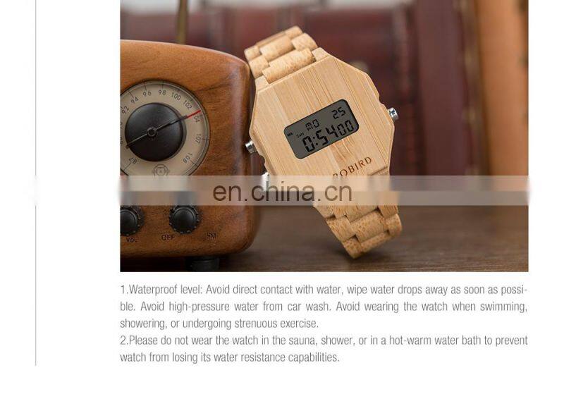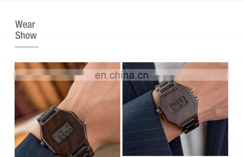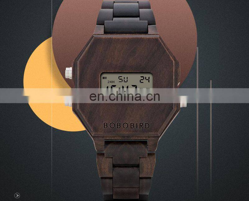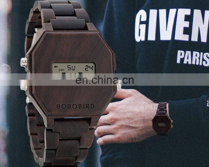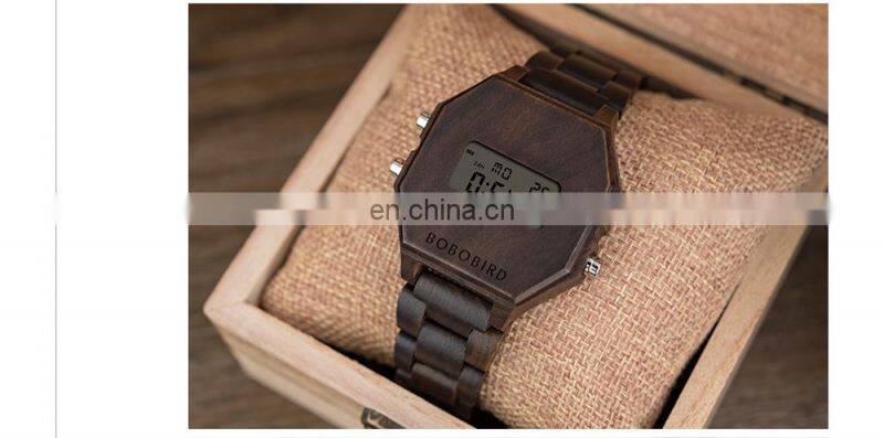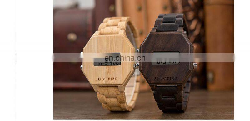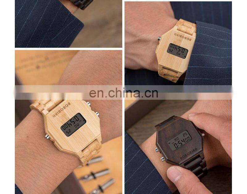 Home > Products > Wooden Bamboo Watches > BOBO BIRD Casual Style Lightweight LED Display Alarm Function Stopwatch Bamboo Wooden Digital Watch