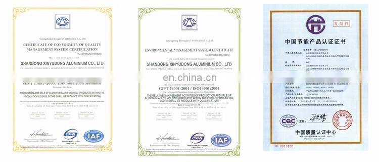 Orient Aluminium has passed ISO9001: 2008 , ISO14001: 2004 , ISO10012 certificate and has been certified AA grade standardize corporate. The products obtain Certification of China Energy Efficient Products. It is the membership of China Construction Metal Structure Association. The products are sold throughout the China and exported to many countries.
