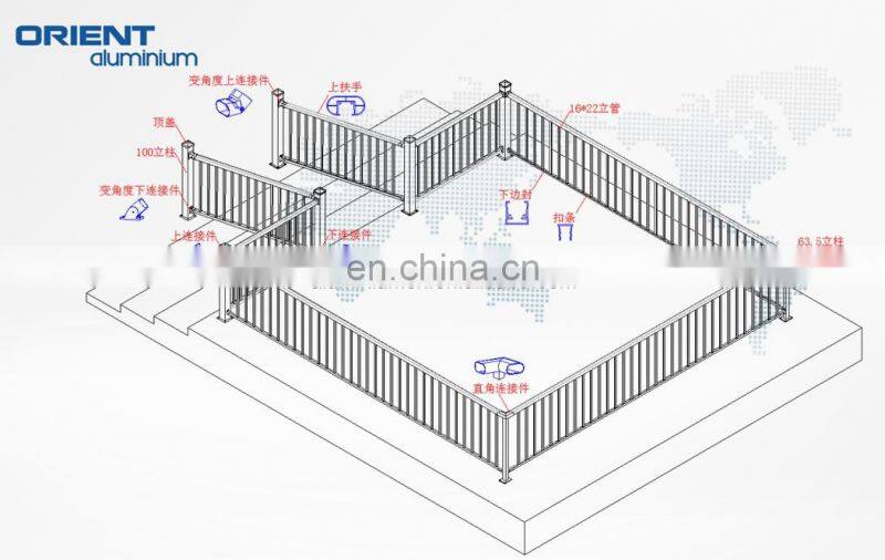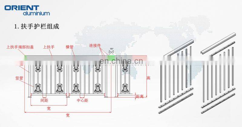 Outdoor Stair Aluminum Railings Handrails /Porch Railings and Posts/ Aluminium Handrail Fittings and Aluminium Handrail Profiles