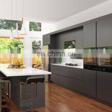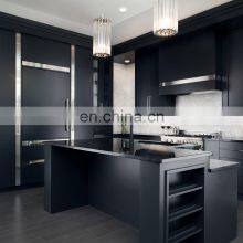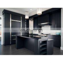 Solid Wood Flat Pack Black Matte Kitchen Cupboard Modern Design Kitchen Cabinets With Island