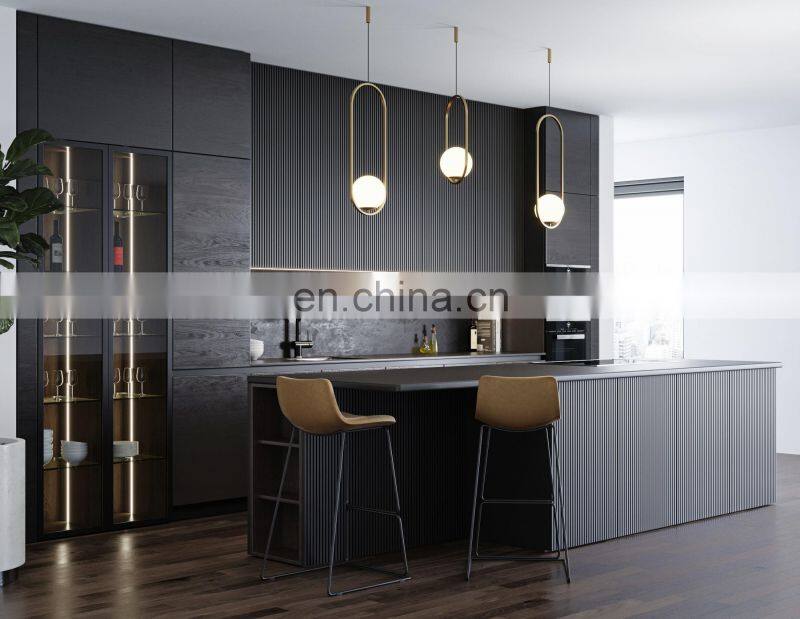 Modern Wood Melamine Kitchen Cabinets Door Panels Plywood Black Modular Kitchen Cabinet Designs