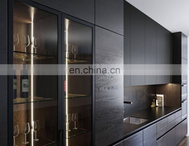 Modern White Lacquer Kitchen Designs Plywood Matte Black BBQ Kitchen Cabinet