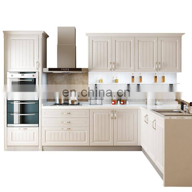 L-shaped White Solid Wood Modern Contemporary Quartz Top Kitchen Cabinets Cocinas