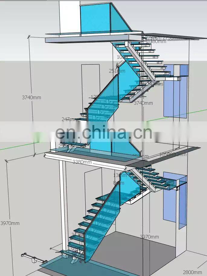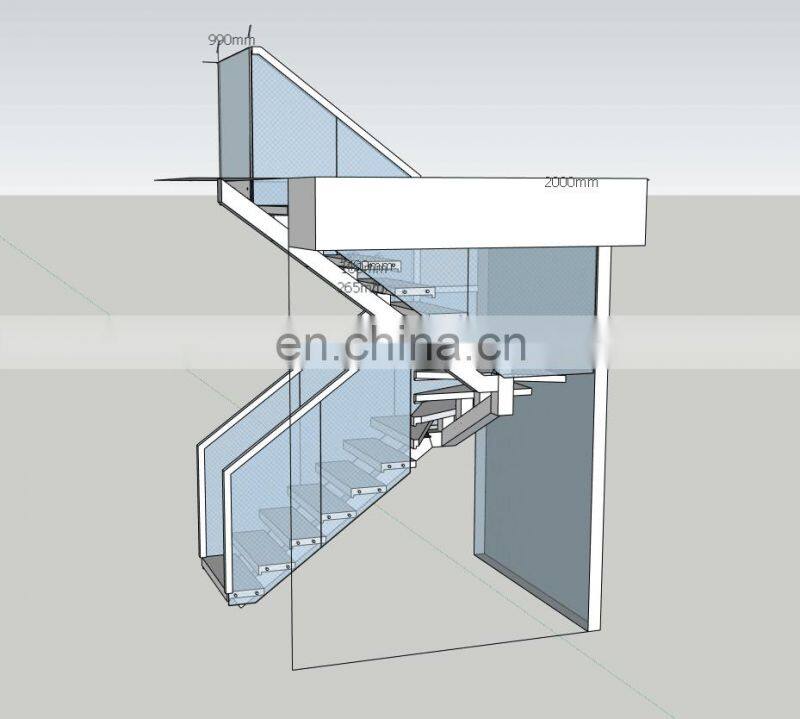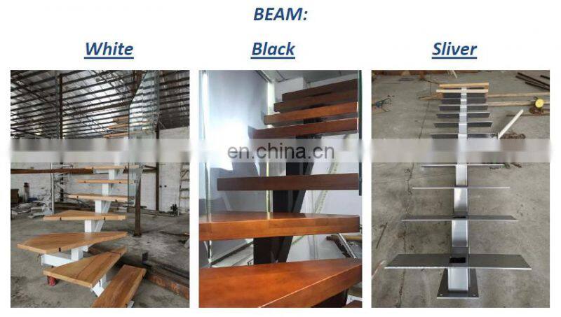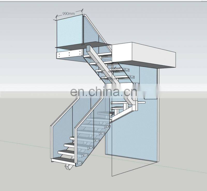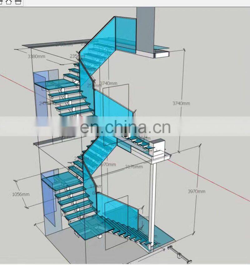 - New Design Modern Floating Staircase Design Glass Railing Metal Beam Mono Stringer Staircase
