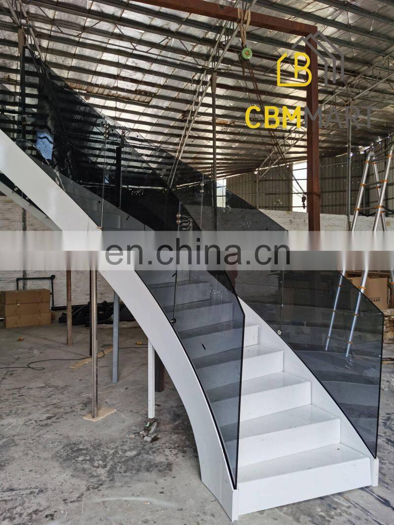 Luxury Modern Home Decoration Indoor Staircase Glass Stair Railing Wooden Arc Curved Stairs Made in China