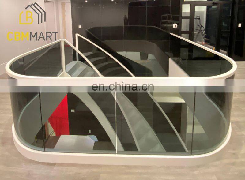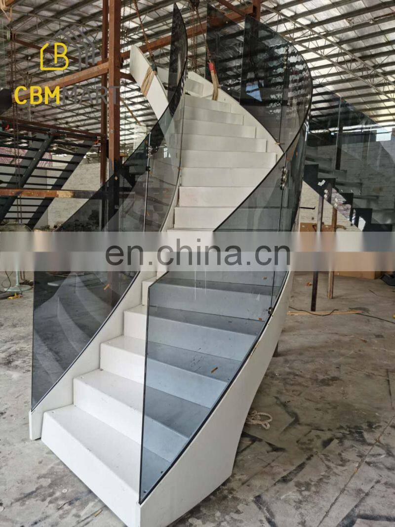 Luxury Modern Stair Glass Railing Curved Stairs Wood Treads Interior Staircase