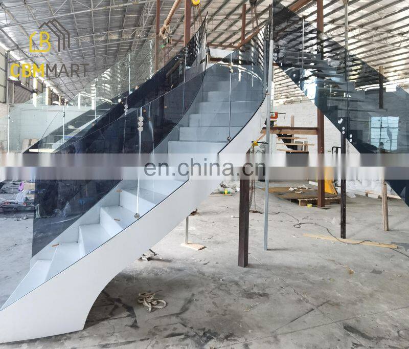Home > Products > Stairs > Luxury Modern Stair Glass Railing Curved Stairs Wood Treads Interior Staircase