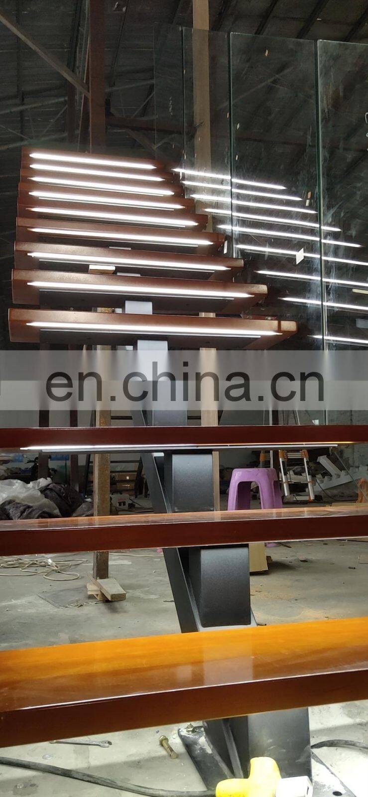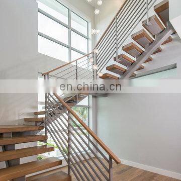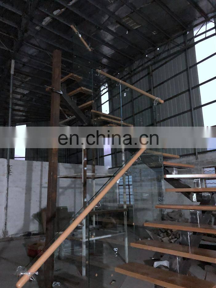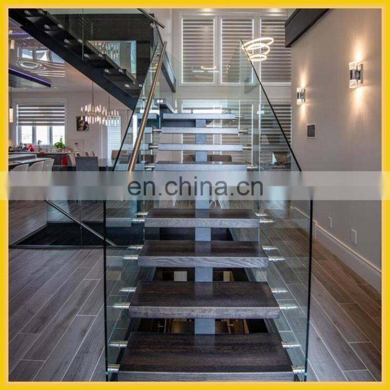 Custom Wood Treads Glass Railings Prefabricated Single Beam Stairs