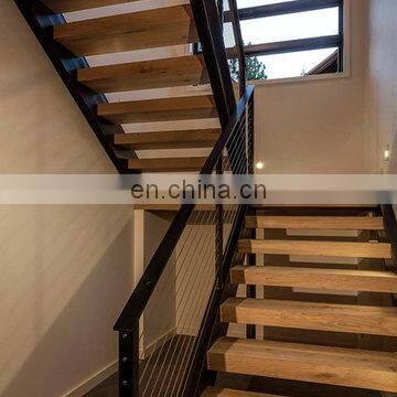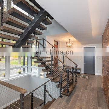 Interior Straight Wooden Mono Steel Beam Straight Staircase With Cable Railings Design