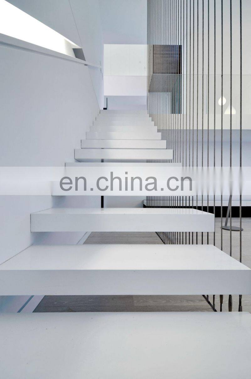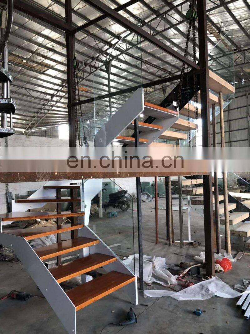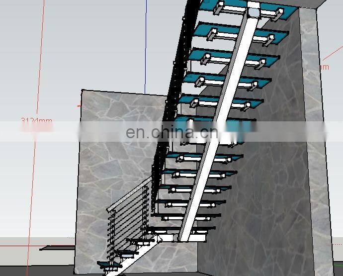 - New Design Modern Floating Staircase Design Glass Railing Metal Beam Mono Stringer Staircase