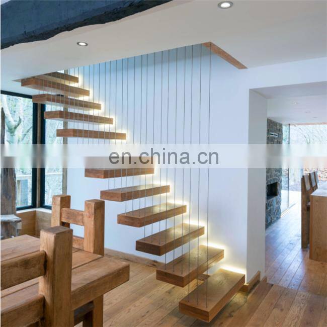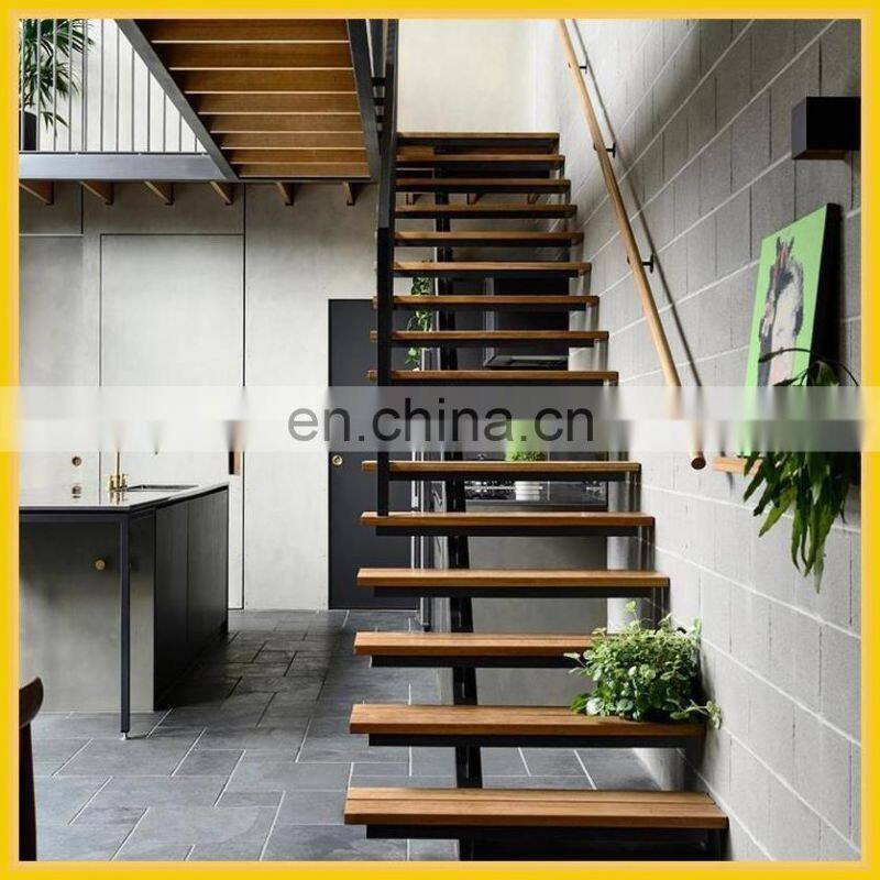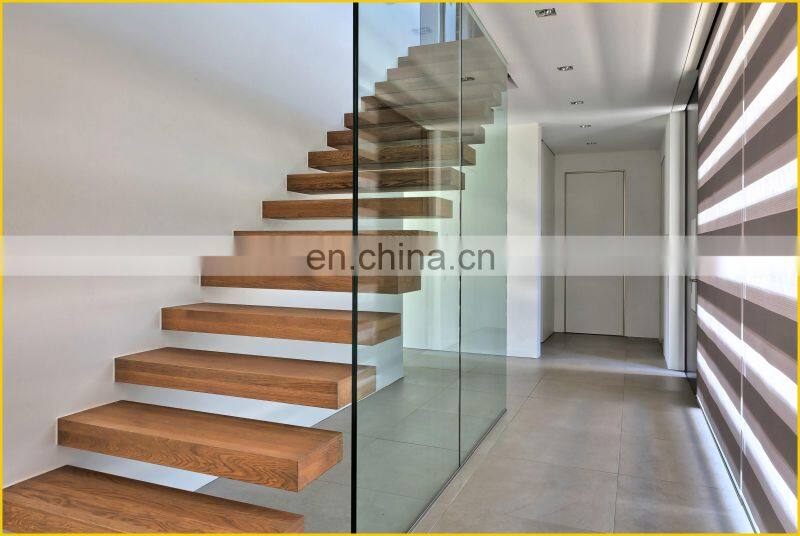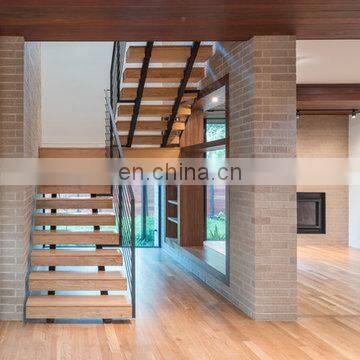 Wood Tread Invisible Stringer Straight Stairs Modern Home Use Single Stringer Stairs Indoor
