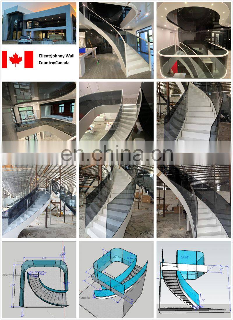Foshan Factory Custom Made Elegant Glass Spiral Staircases Design With Railings Design