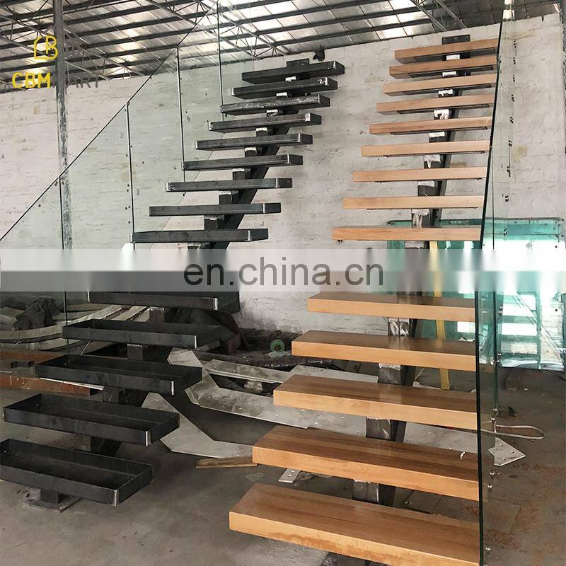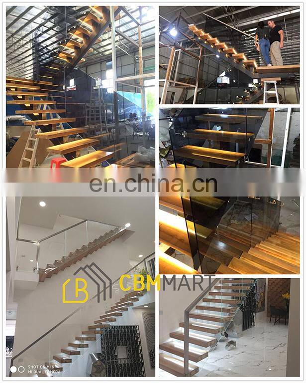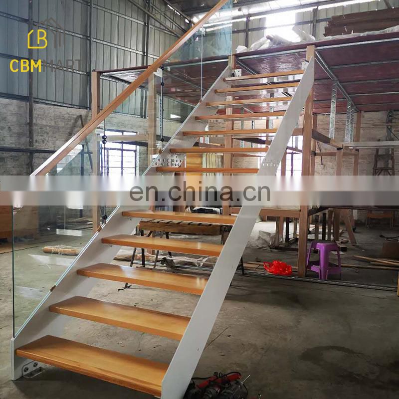 Custom Foshan Factory CBMMART Mono Beam Wooden Stairs With Steel Straight Stringer
