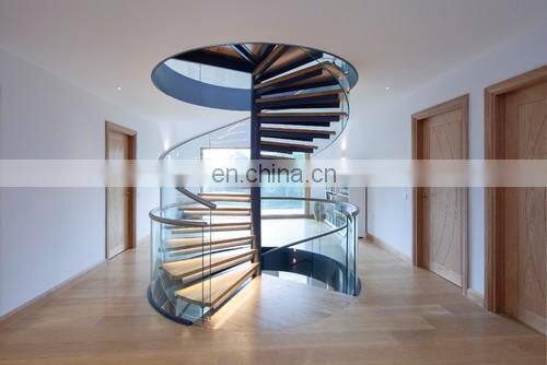 Customized Interior Designs Glass Handrail Spiral Steel Stringer Staircase