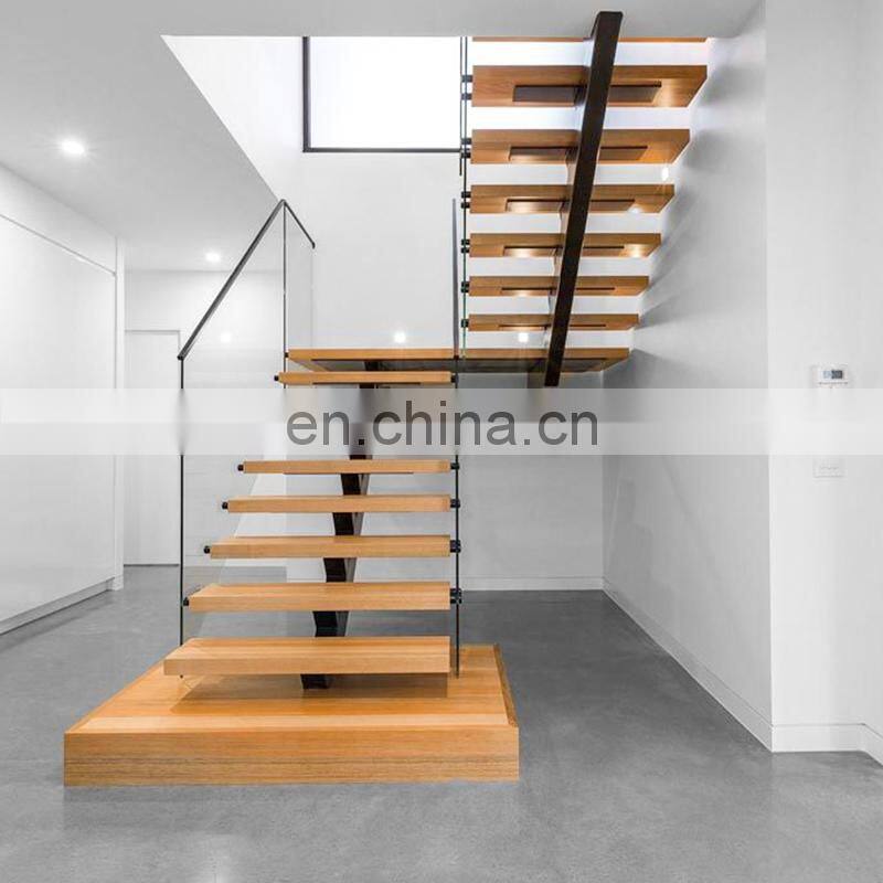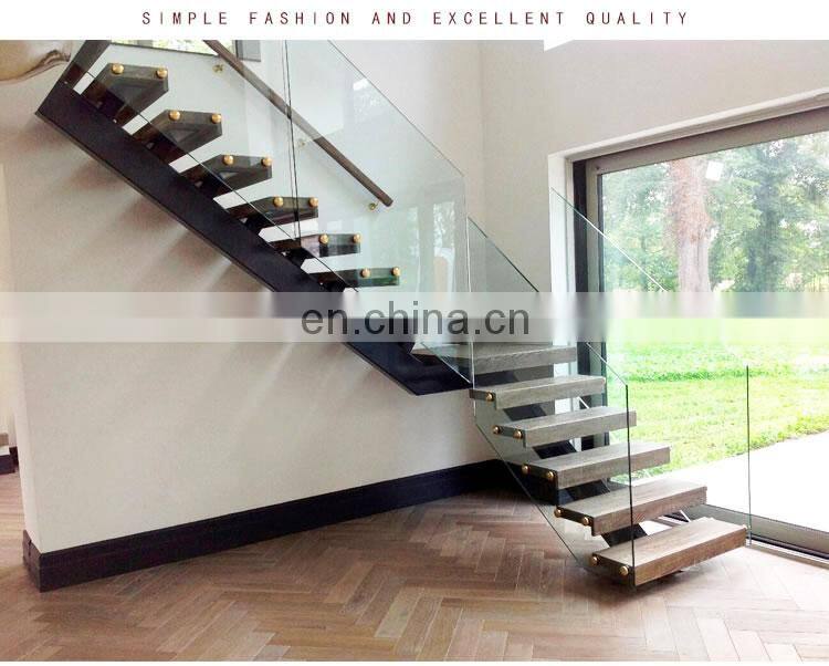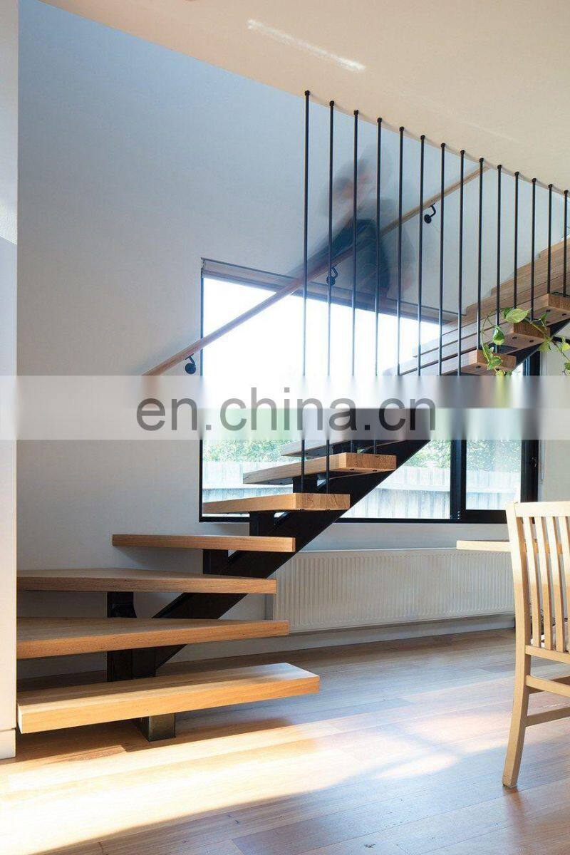Foshan Factory Solid Beach Wood Treads Single Stringer Straight Stairs With Mono Steel Beam