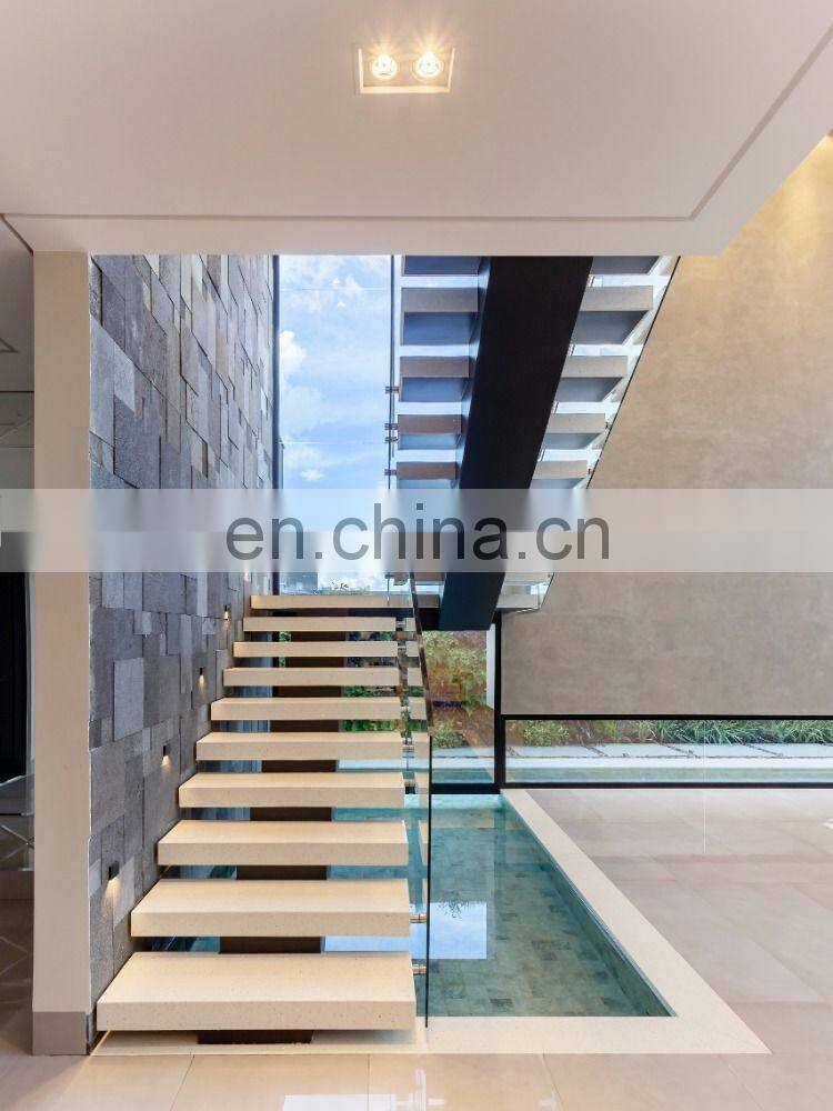 - New Design Modern Floating Staircase Design Glass Railing Metal Beam Mono Stringer Staircase