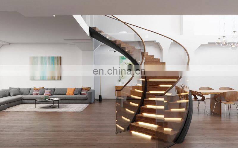 Customized Floating Staircase Modern Curved Stair Wood Tread Spiral Staircase