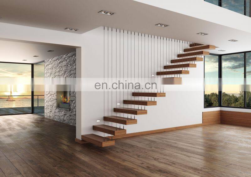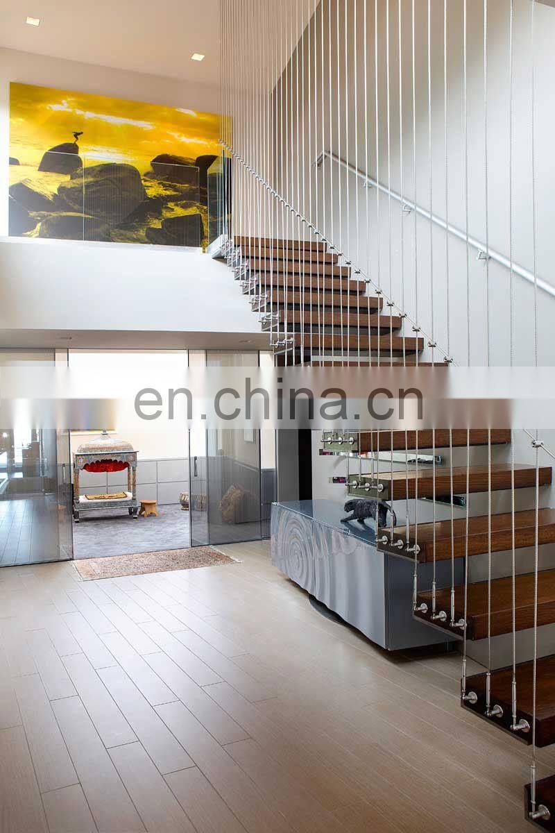 European Indoor Vertical Wire Railing Stainless Steel Cable Stair Floating Staircase