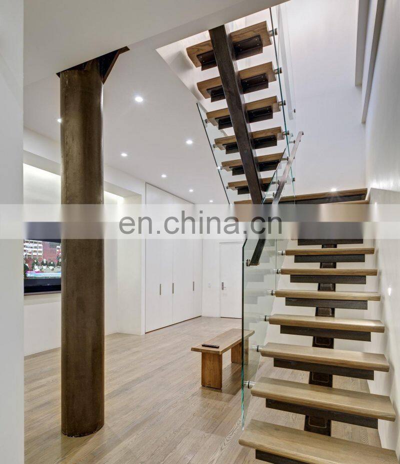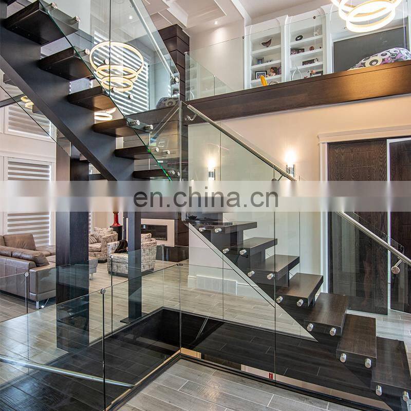 - New Design Modern Floating Staircase Design Glass Railing Metal Beam Mono Stringer Staircase