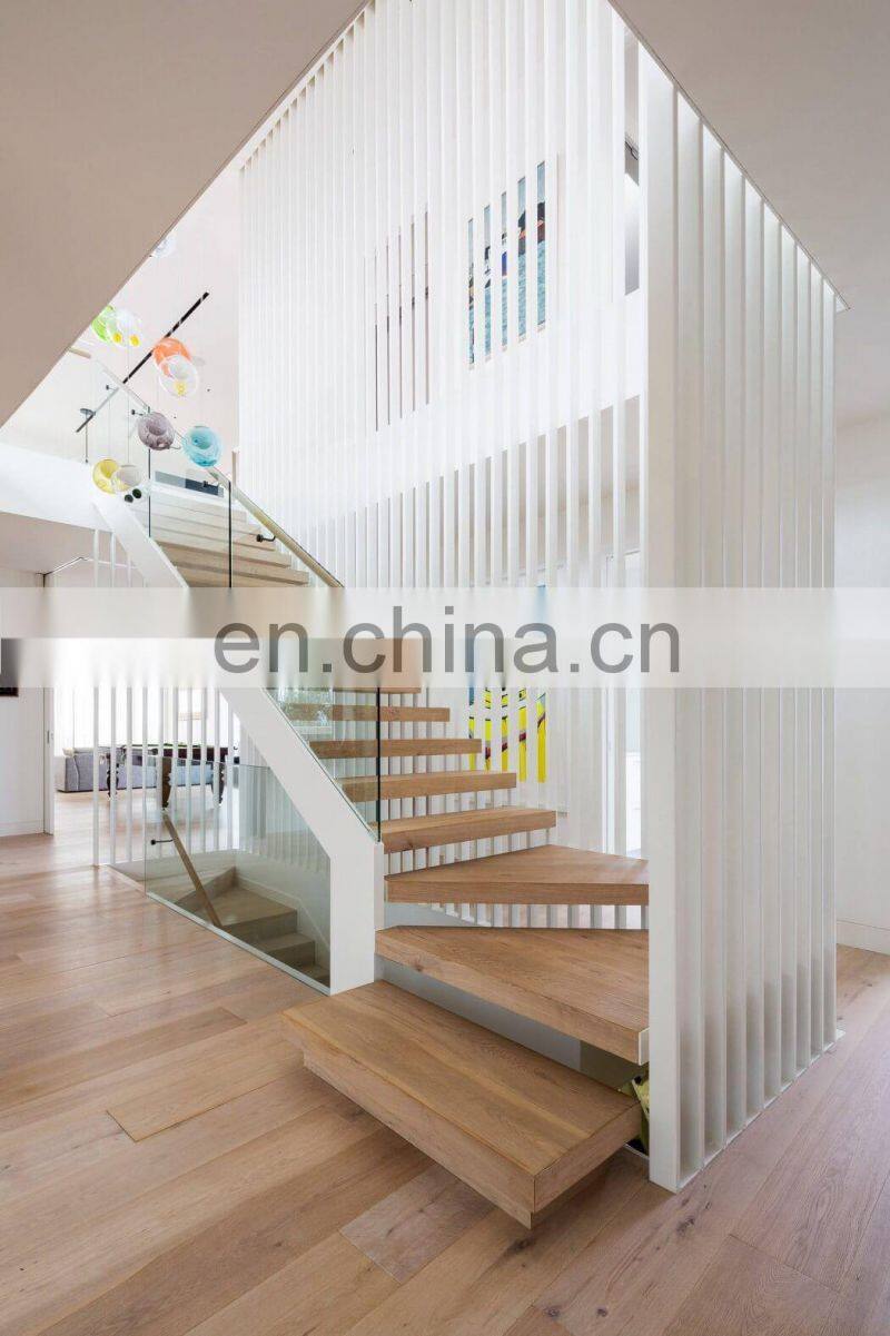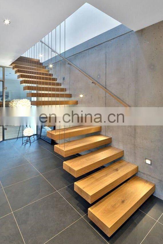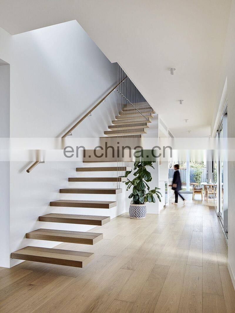 Modern Wooden Staircase Oak Wood Step Straight Suspended Stairs