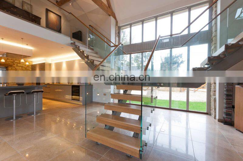 - New Design Modern Floating Staircase Design Glass Railing Metal Beam Mono Stringer Staircase