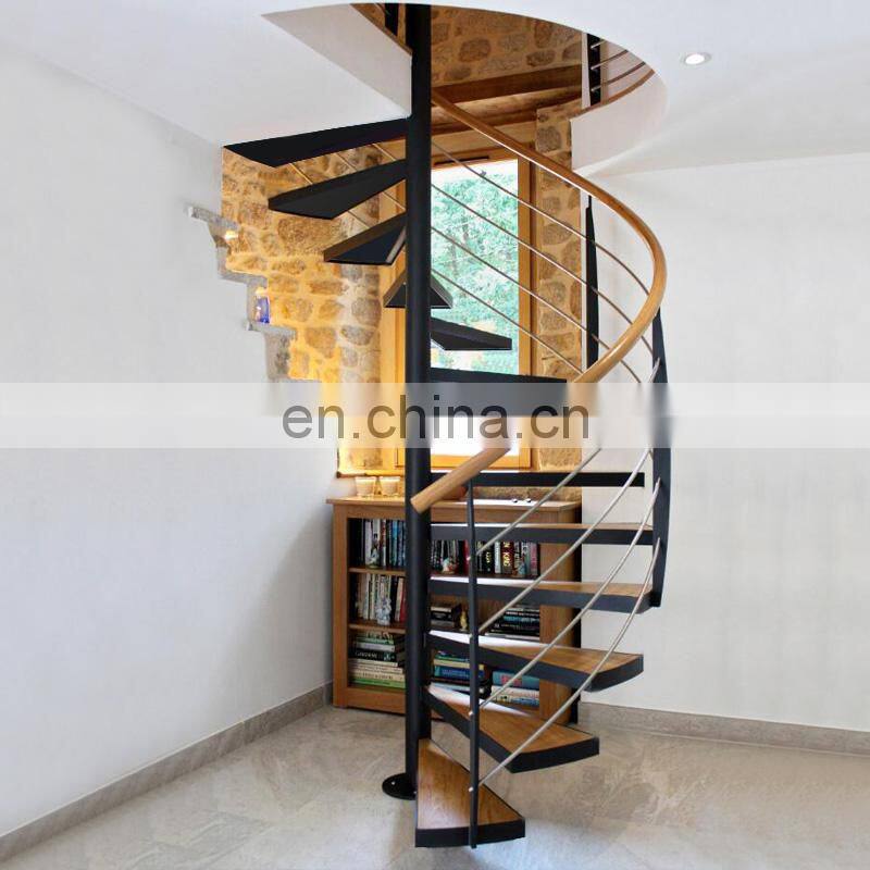 High Quality Factory Design Indoor Spiral Staircase With Carbon Steel Wooden / Glass Tread