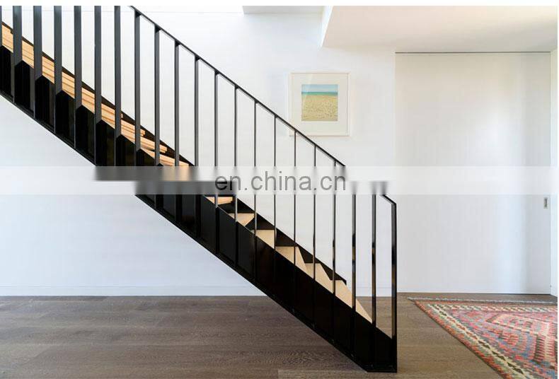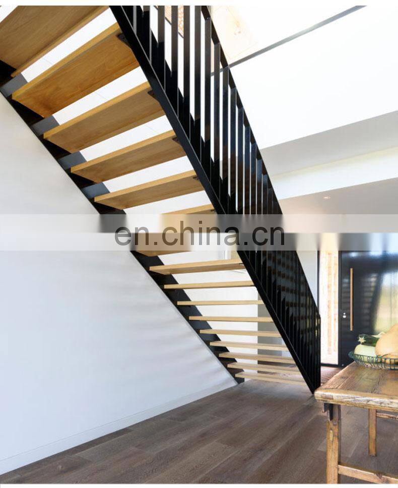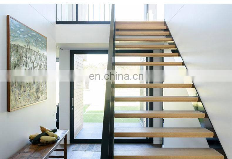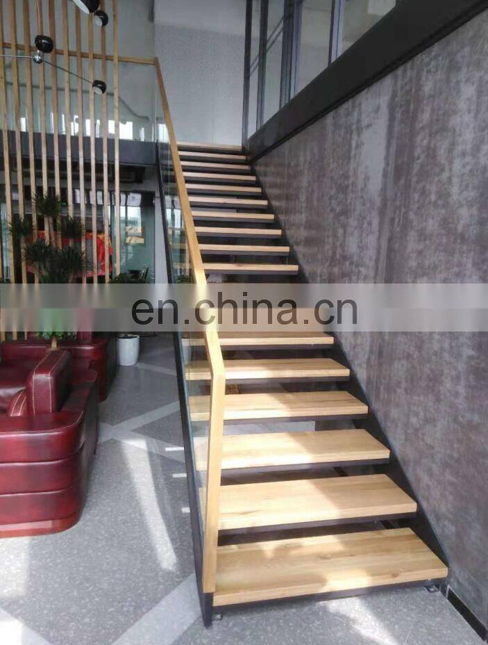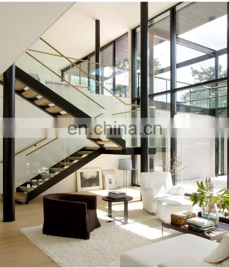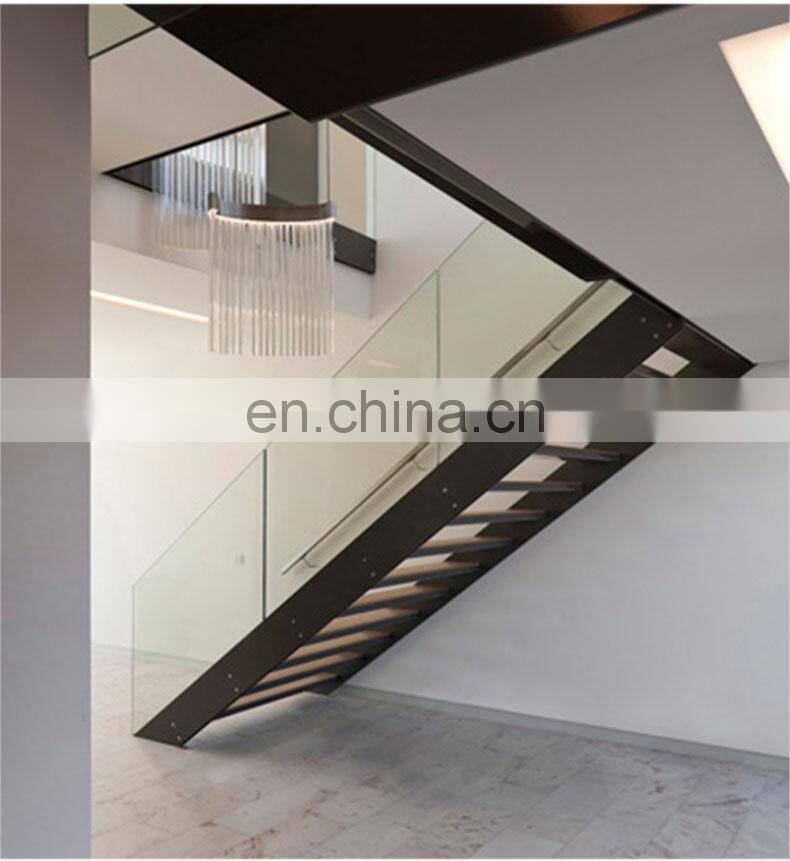 - New Design Modern Floating Staircase Design Glass Railing Metal Beam Mono Stringer Staircase