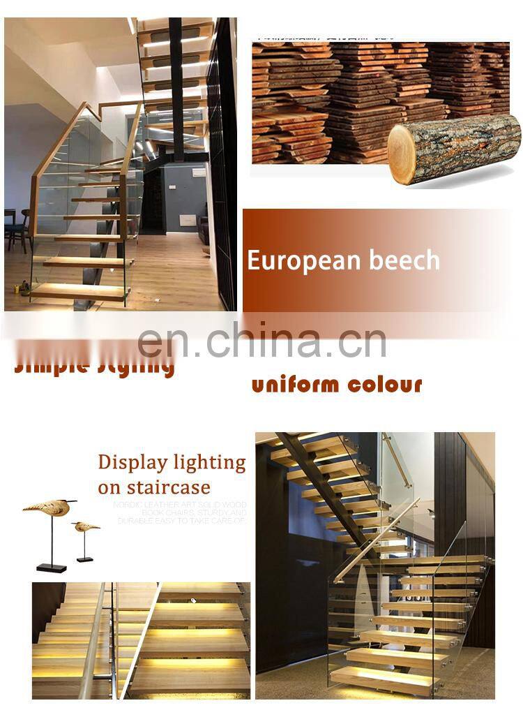 Modern Indoor Design l Shape Glass Railing Beech Wood Stairs for Home