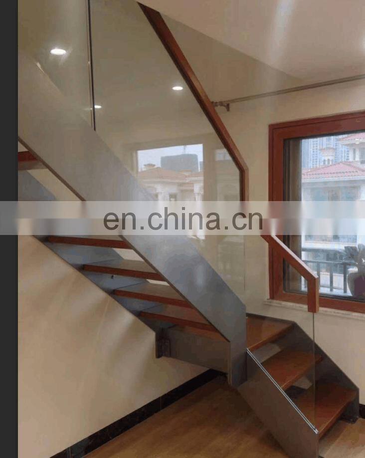 Modern Style Indoor Mono Stringer Glass Wood Staircase With Stainless Steel Hanrail