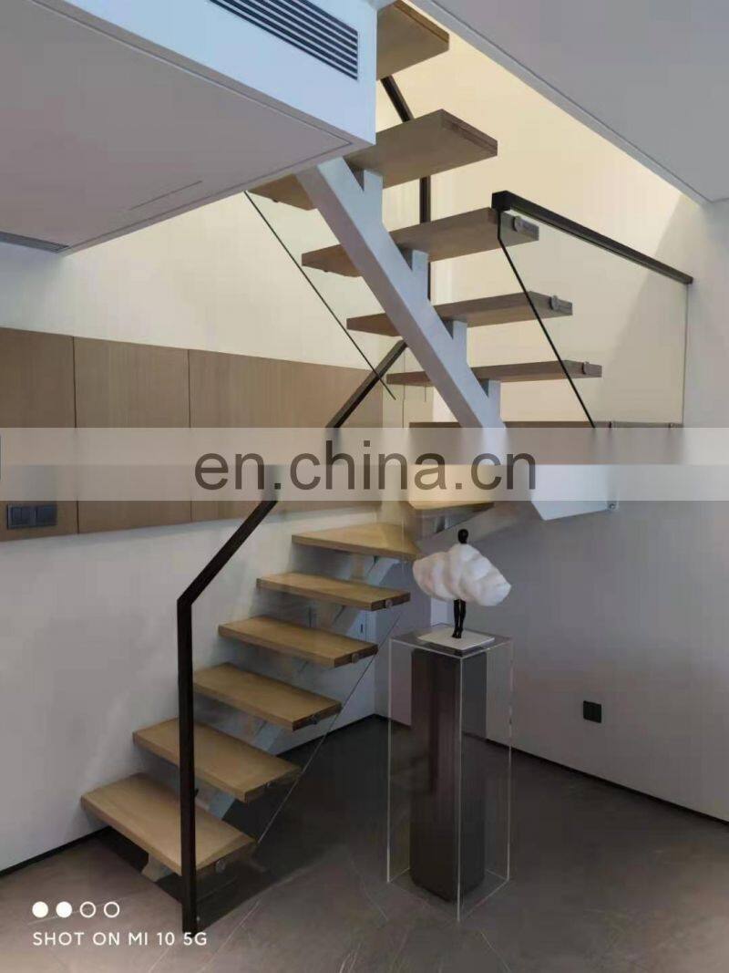 - New Design Modern Floating Staircase Design Glass Railing Metal Beam Mono Stringer Staircase