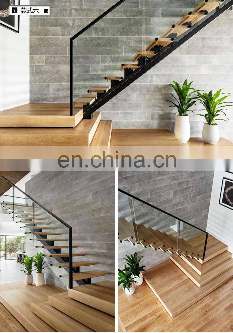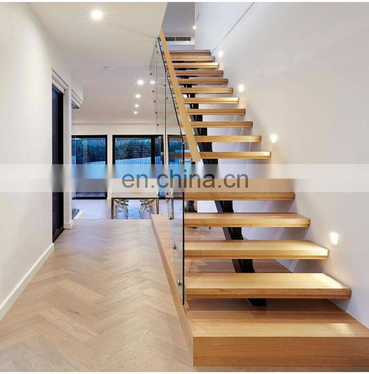 - New Design Modern Floating Staircase Design Glass Railing Metal Beam Mono Stringer Staircase