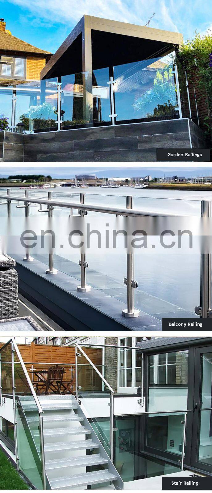 Hot Sale Outdoor Balustrade Design Stainless Steel Post Clamps Balcony Terrace Deck Glass Railing