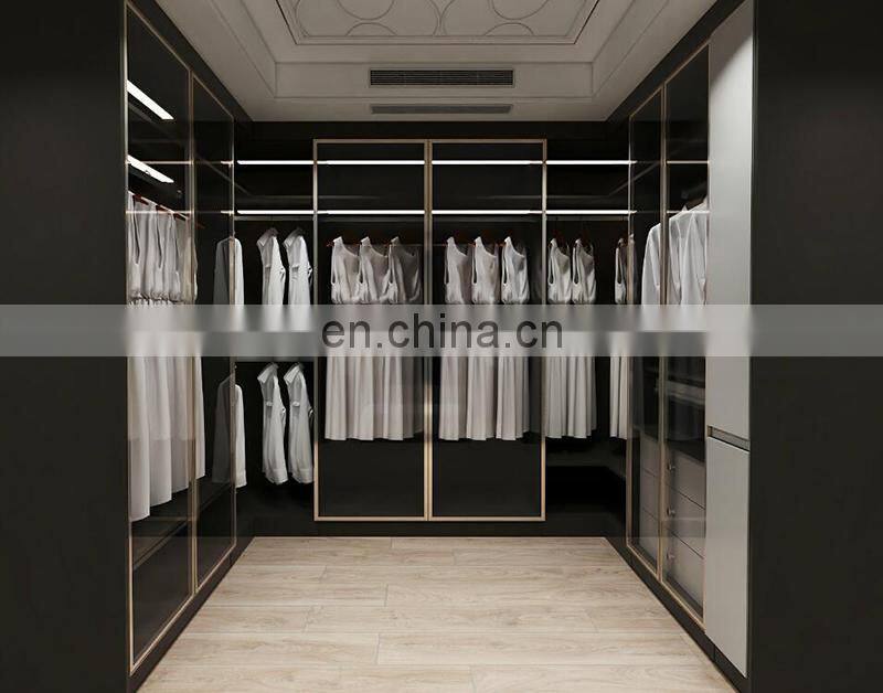 Modern Master Bedroom Custom Led Hanging Closet Rod Glass Door Closet Wardrobe Armoire